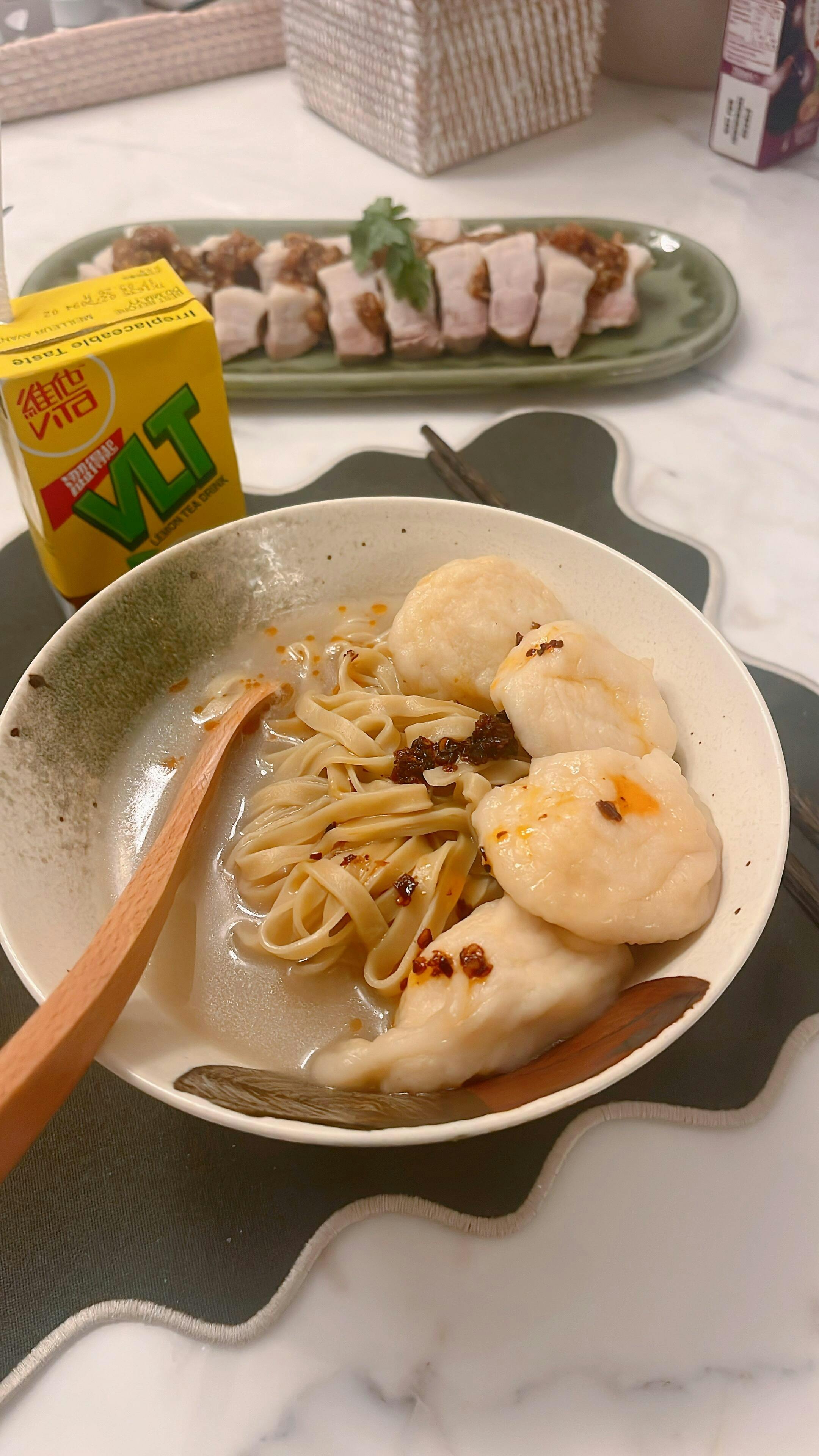 1. Put the fish puffs into boiling water for 10 minutes. You may also serve it with noodles according to your own preference.